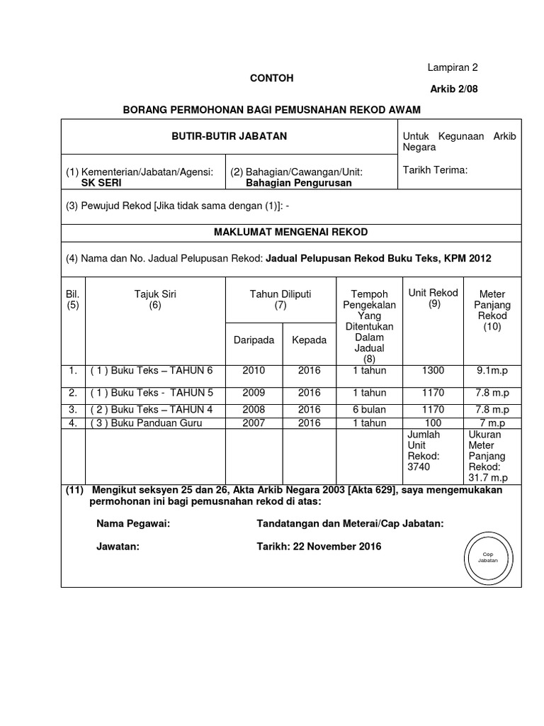 Doc Lampiran 2 Contoh Arkib 2 08 Borang Permohonan Bagi Pemusnahan Rekod Awam Manisah Abdullah Academia Edu