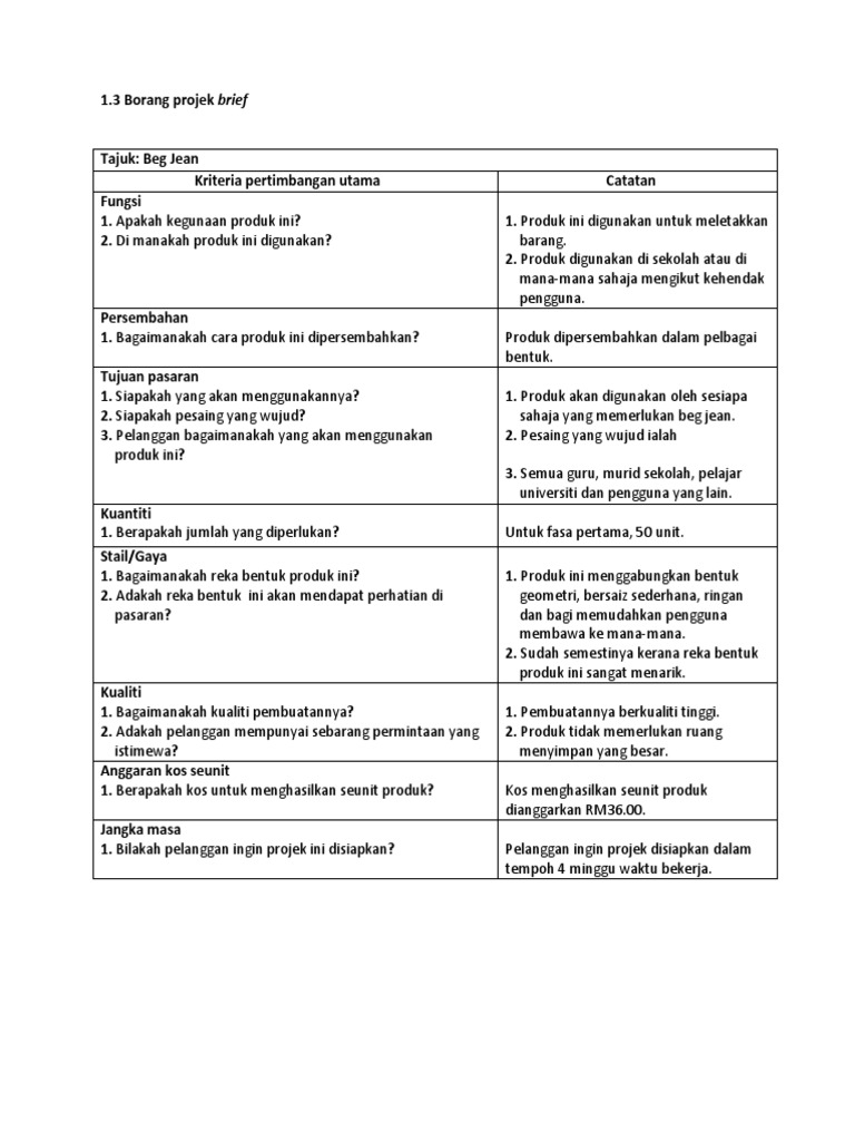 Borang Projek Brief Kumpulan 1 Tajuk Beg Tangan Serba Guna A Tajuk Projek 1 Apakah Jenis Produk Atau Perkhidmatan 2 Apakah Kegunaan Produk Ini Course Hero