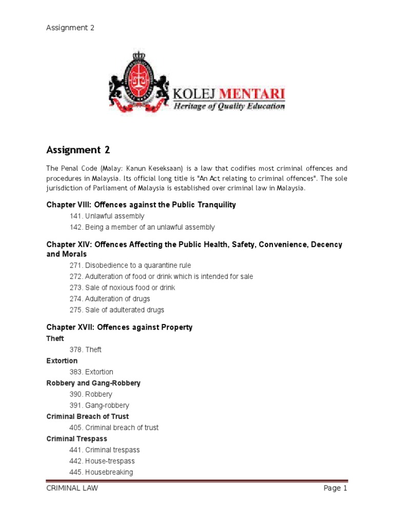 Assignment 2 Chapter Viii Offences Against The Public Tranquility