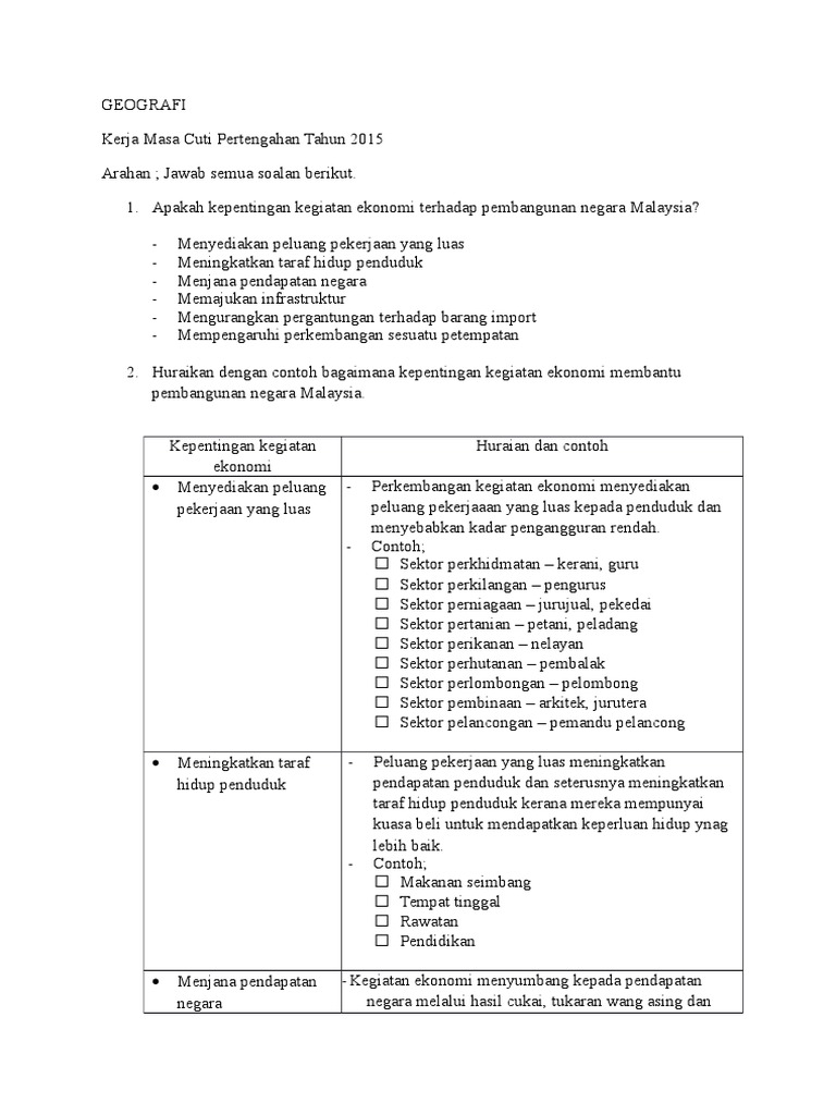 Contoh Jawapan Tugasan Geografi Pt3 2015 Kegiatan Ekonomi