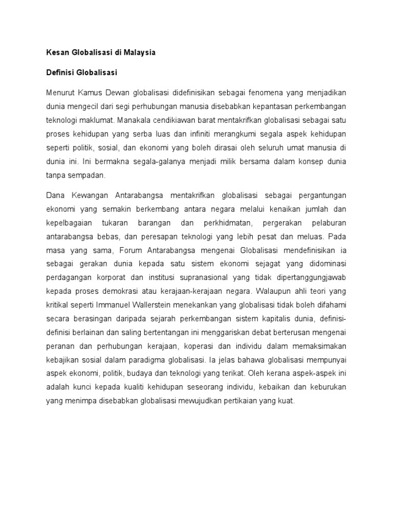 Cabaran Globalisasi Dan Kesan Globalisasi