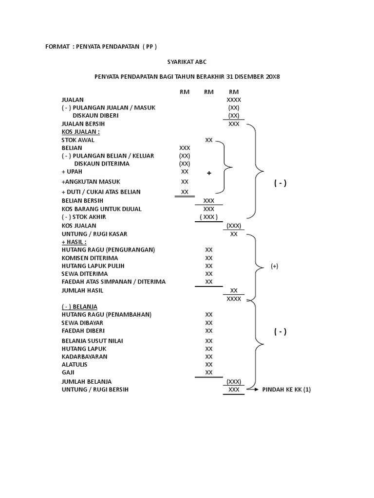 Format Penyata Pendapatan Dan Kunci Kira Kira Pdf Document