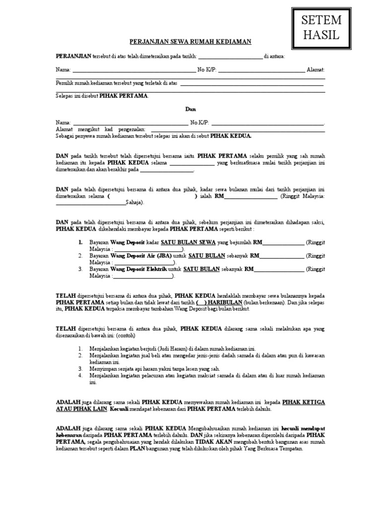 Surat Perjanjian Sewa Rumah Pdf Guru Ilmu Sosial