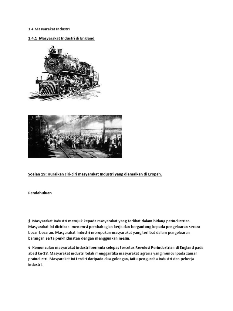 Sejarah Stpm 1 4 Masyarakat Industri England Jerman Pada Abad Ke