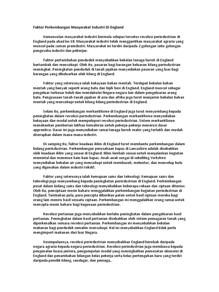 Faktor Perkembangan Masyarakat Industri Di England