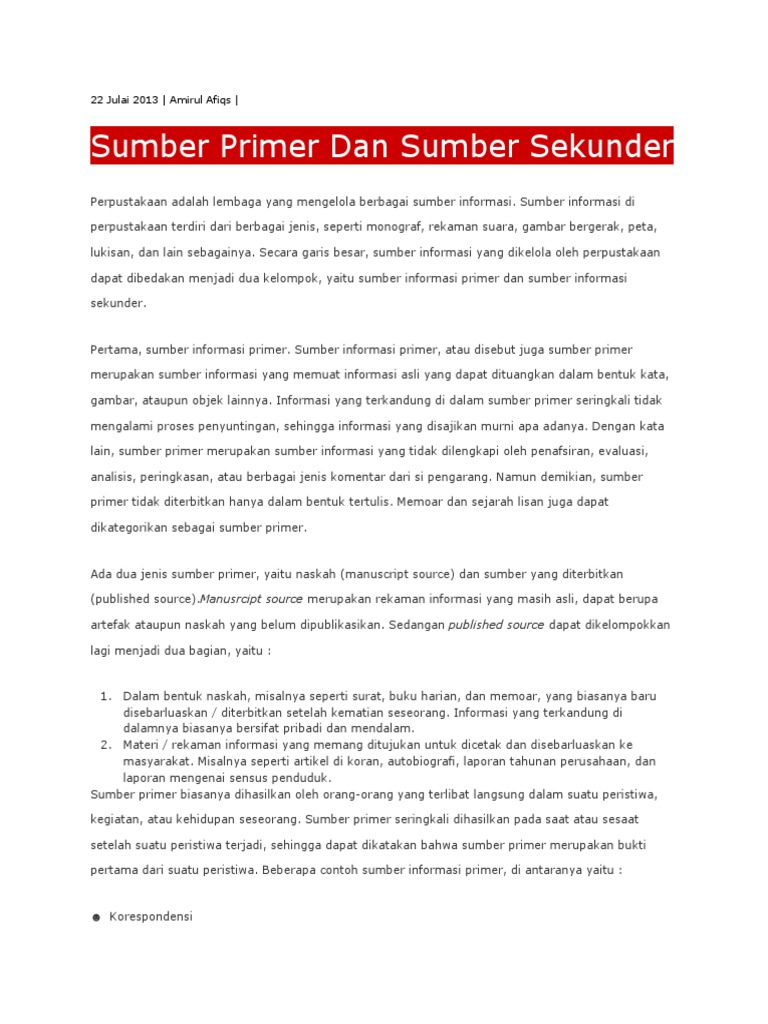 Sumber Primer Sekunder Dan Tersier 2 Pdf Document